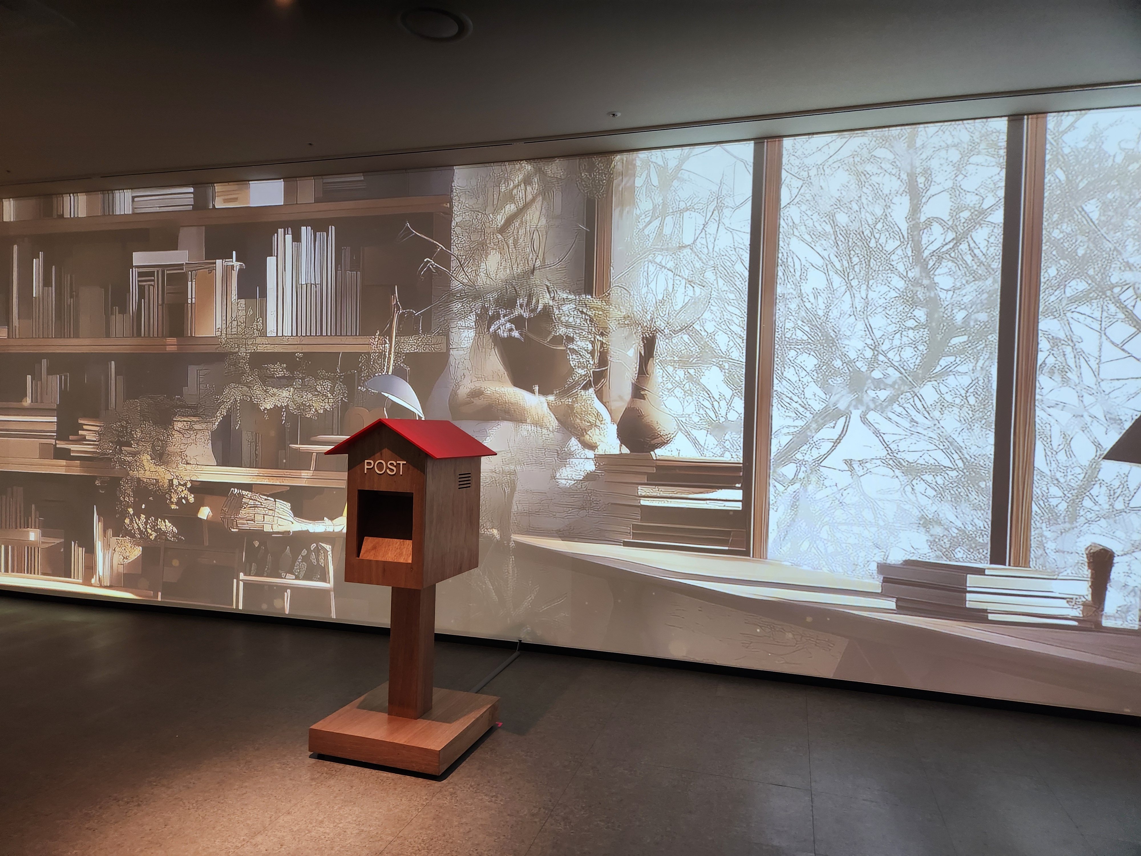 여러 질문에 답하니 맞은편 우체통에서 엽서가 나온다.