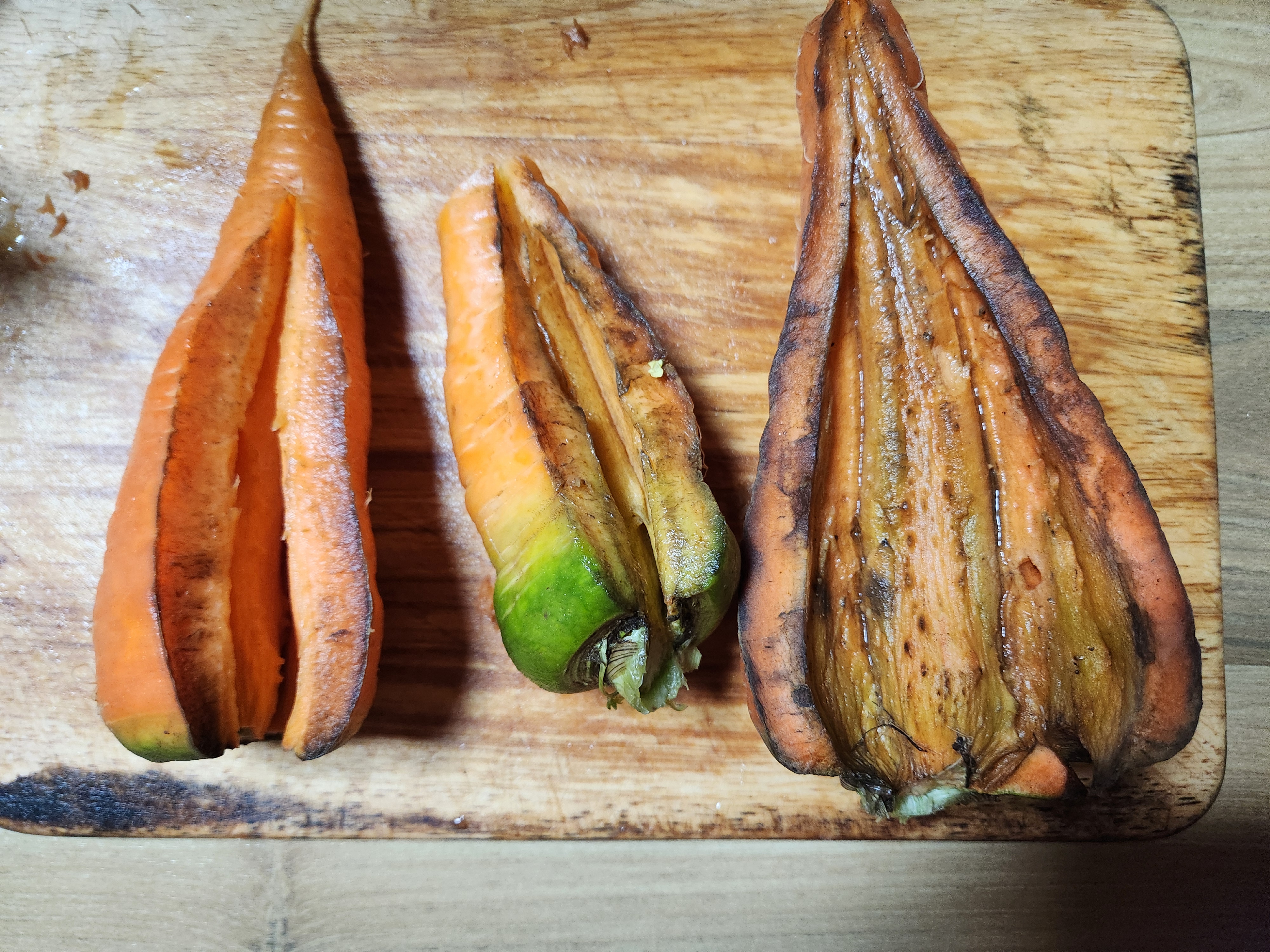 그사이에 더 큰 당근을 또 주셨는데 거실 귀퉁이에 갈라진 당근이 눈에 띄었다.
